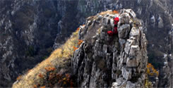滴水壶西面峭壁如刀削斧劈,抬头仰望仅见一线之天,间或有野雉或乌鸦鸣叫飞过,在石缝筑巢的鸟类太多,常成群盘旋于山谷之上,这里就是鹞子口。早年时这一带鹞子和雕很多,清代曾于金州设雕厂,命令猎户每年向朝廷上缴各种雕翎四百余副,为官员品级顶戴和宫廷装饰之用。